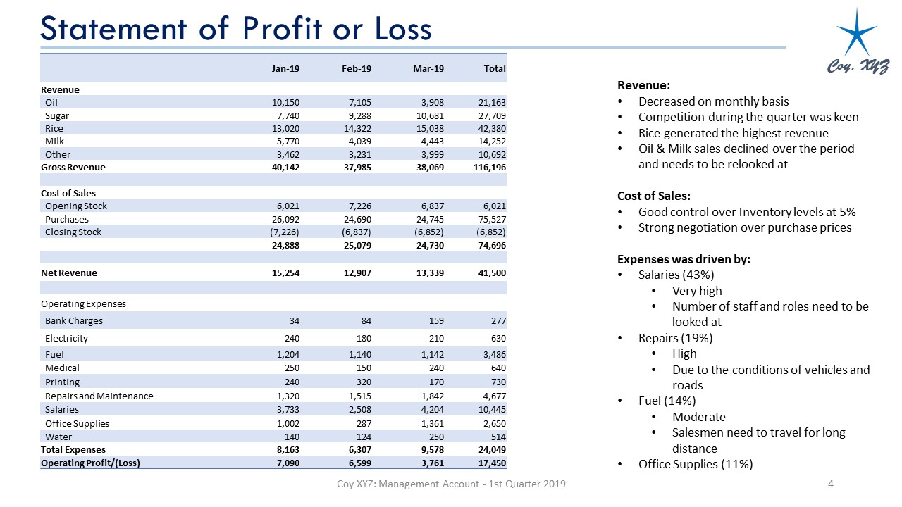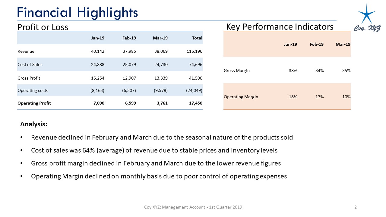 - We present your management accounts in top-notch graphics and explanations